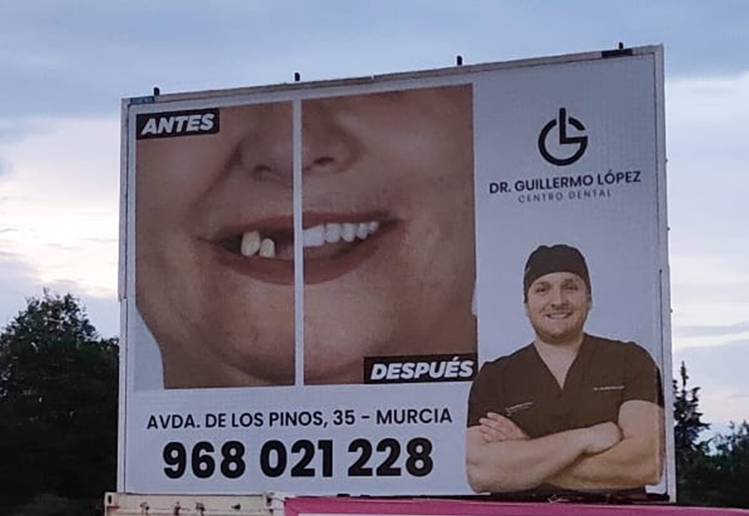 La Asociación ADUAFI (Asociación de usuarios afectados por negligencias dentales en la Región de Murcia), en su compromiso de velar por la protección de los derechos y la dignidad de los consumidores víctimas de negligencias odontológicas, desea poner en conocimiento público la denuncia de una presunta publicidad ilícita llevada a cabo por la clínica dental Guillermo López en Avda. de los pinos.